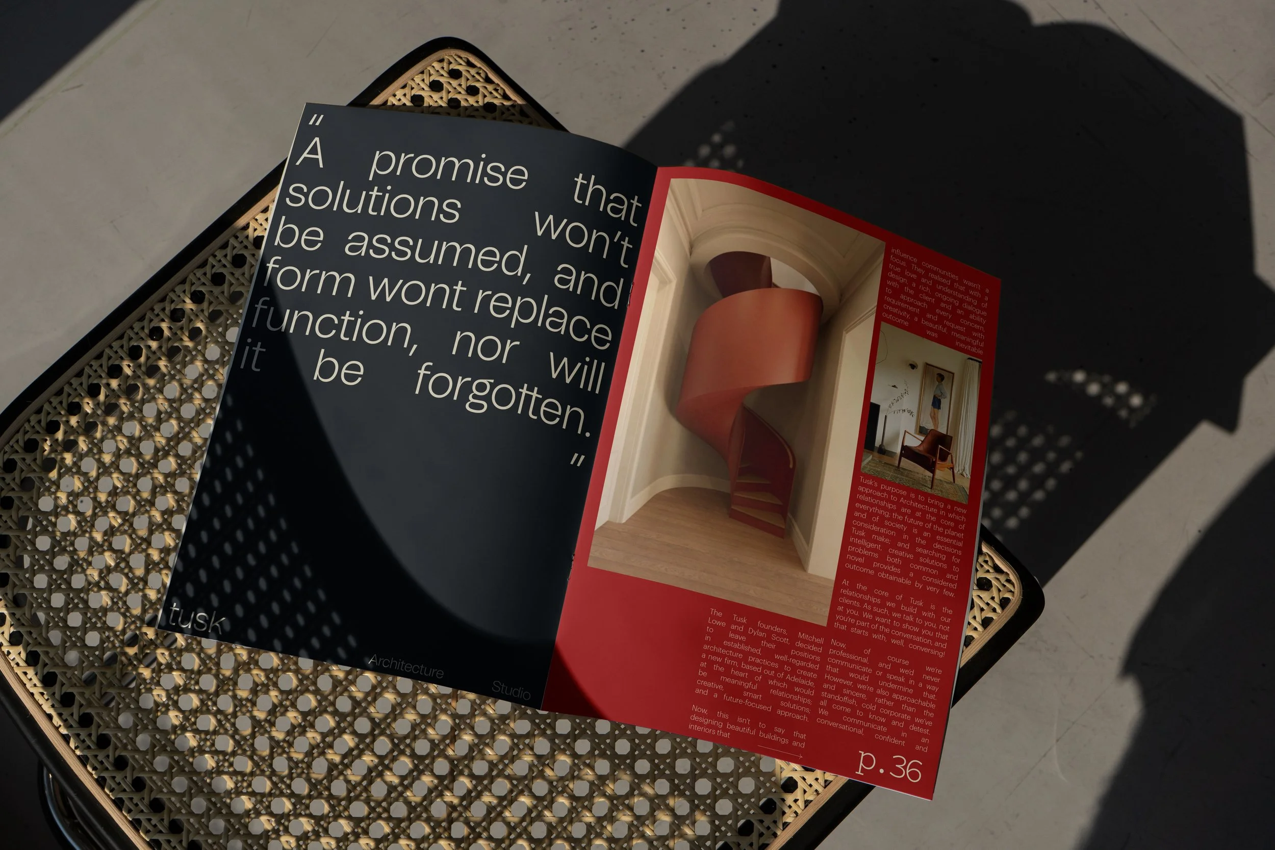 The Tusk founders, Mitchell Lowe and Dylan Scott, decided to leave their positions in established, well-regarded architecture practices to create a new firm, based out of Adelaide, at the heart of which would be meaningful relationships; creative, smart solutions; and a future-focused approach.
